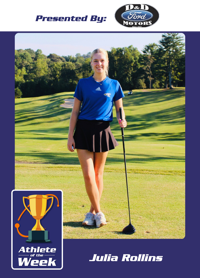 Rollins was the low-round medalist for our Eastside's crucial region win over Wade Hampton last week. She made a season high three birdies on her way to shooting a 38 which helped Eastside to a one stroke victory.