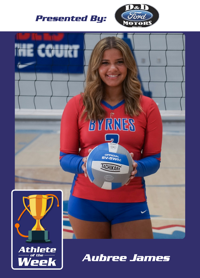 Byrnes scored an upset over Riverside in region play on Thursday, and James was a huge reason why. James racked up nine kills and 17 digs as Byrnes earned a huge 3-2 win to climb the 5-A Region 2 standings.