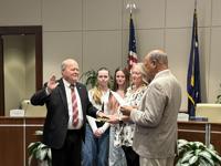 Karuiam Booker was sworn in for his second term in District Two, and two newcomers to the council were sworn in to their seats. Charles Lander assumed the seat for District Four, and Paul Lamb assumed the seat for District Six. Gene Gibson was sworn in as commissioner of public works, a position he has held for over 40 years.