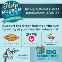 The events will conclude on Friday, Aug. 29, with a surprise announcement from the museum. For more information on Museum Week, visit the Greer Heritage Museum’s website.